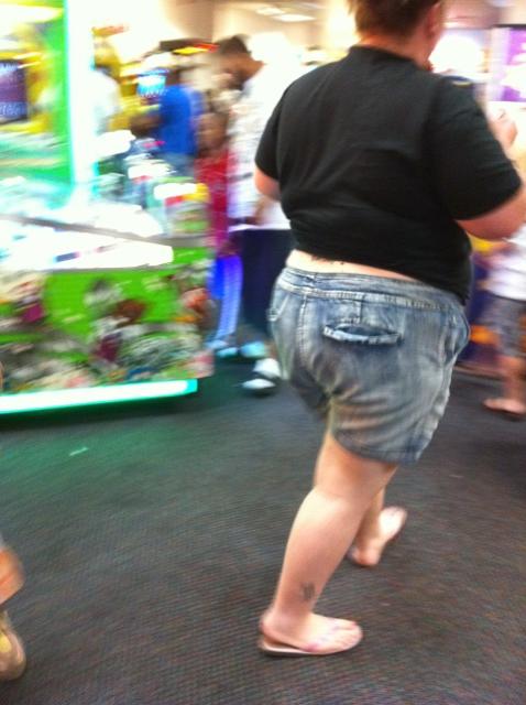 Because either I’m a masochist or a very good friend, I took Ainsley and Zeina’s two girls to Chuck E Sneeze yesterday. On a Saturday. Even though I wanted to scratch my eyes out with the Lollipop each girl won with 1,400 tickets, $50 and three hours of my miserable existence later, I was too afraid of the painful bacterial infection it was sure to inflict. So let me just apologize in advance if you plan to eat any time in the next 24 hours, but I feel compelled to post stealth iPhone pics of a few of my favorite patrons.